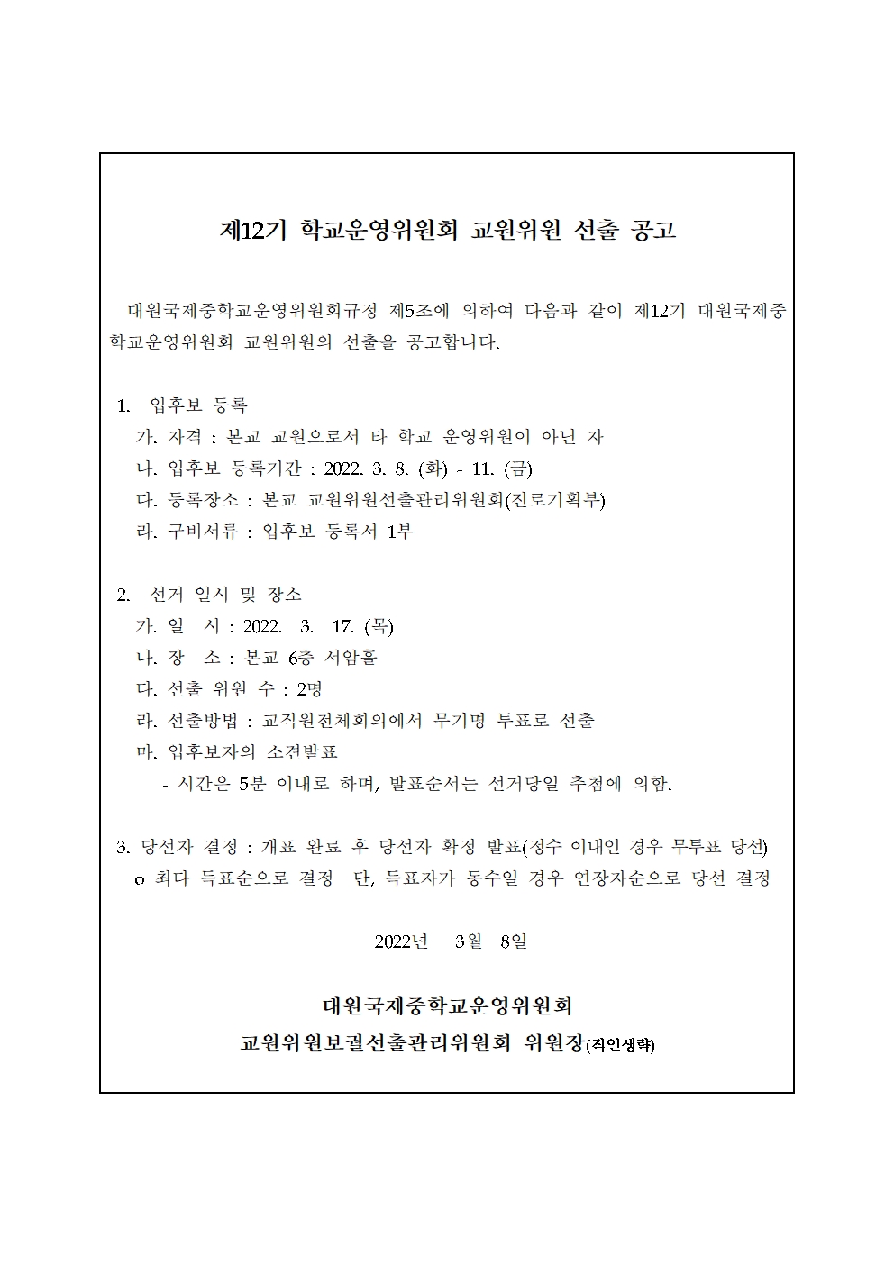 2022Çг⵵ Á¦12±â Çб³¿î¿µÀ§¿øÈ¸ ±³¿øÀ§¿ø ¼±Ãâ °ø°í