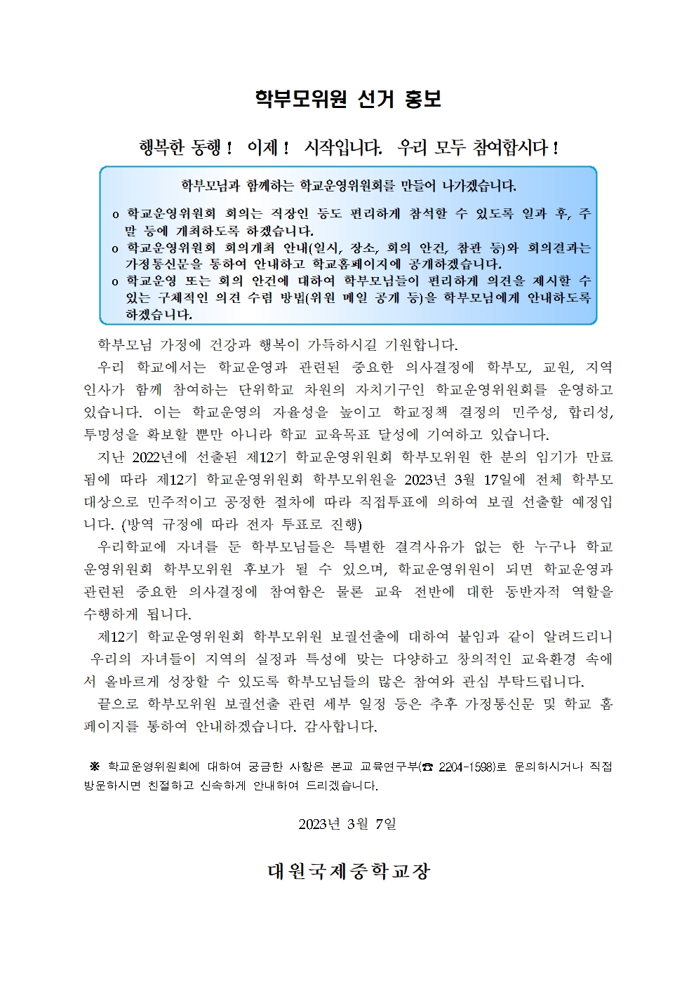 2023Çг⵵ Á¦12±â Çб³¿î¿µÀ§¿øÈ¸ ÇкθðÀ§¿ø º¸±È¼±Ãâ È«º¸