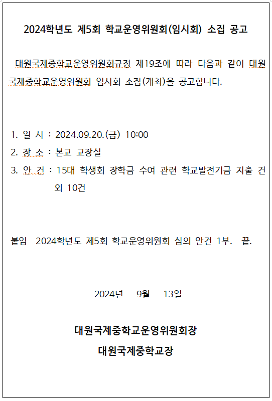 Á¦5ȸ Çб³¿î¿µÀ§¿øÈ¸ °³ÃÖ °ø°í