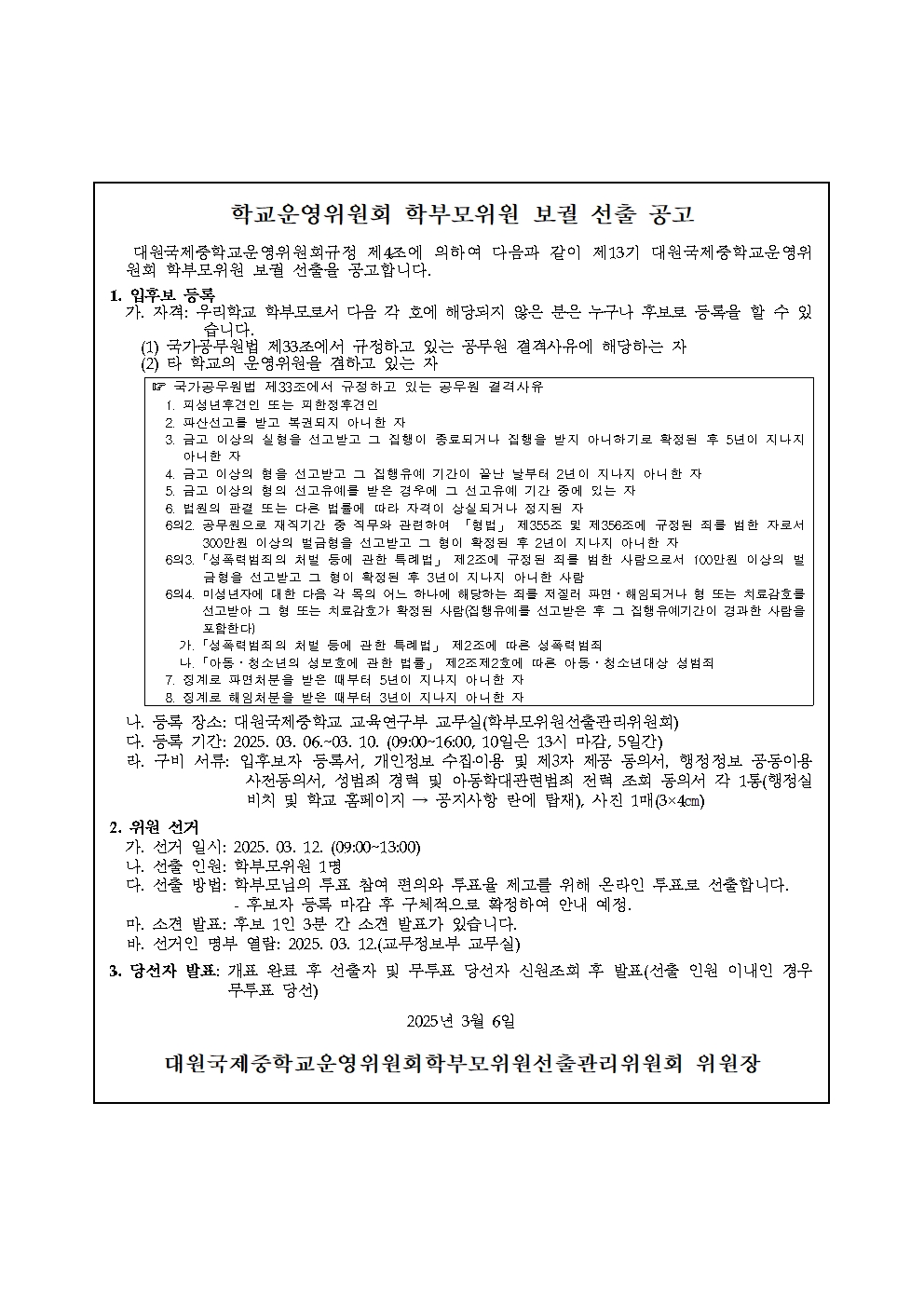 2025Çг⵵ 13±â Çб³¿î¿µÀ§¿øÈ¸ ÇкθðÀ§¿ø º¸±È ¼±°Å(°ø°í) È«º¸
