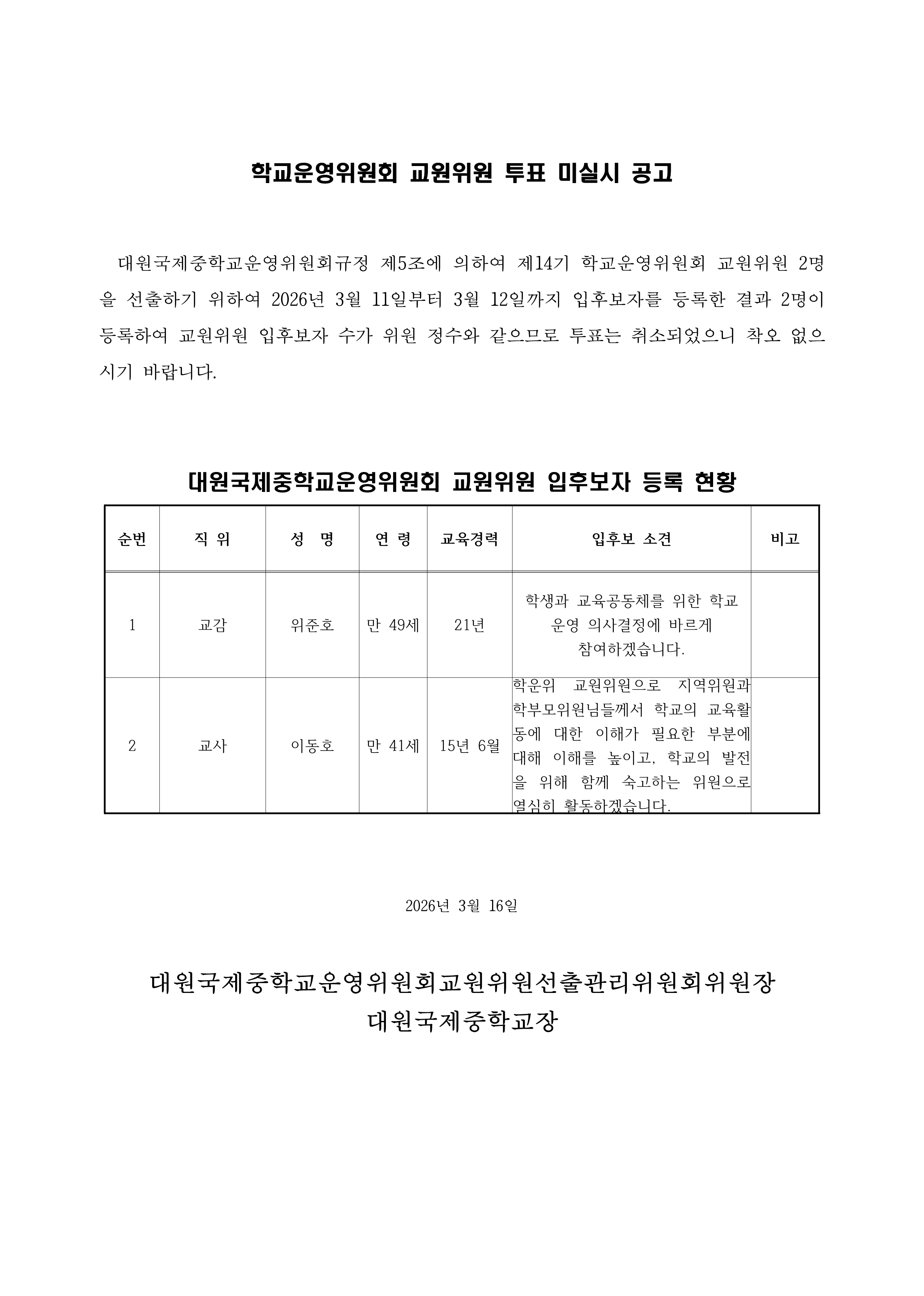 Á¦14±â Çб³¿î¿µÀ§¿øÈ¸ ±³¿øÀ§¿ø ÅõÇ¥ ¹Ì½Ç½Ã °ø°í (¼±°Å °øº¸)