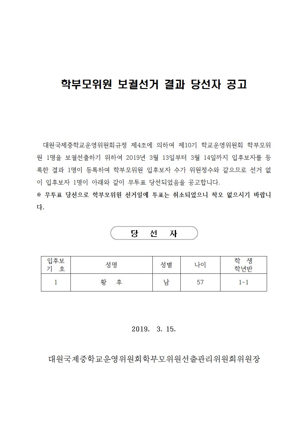 Á¦10±â ÇкθðÀ§¿ø º¸±È¼±°Å °á°ú ´ç¼±ÀÚ °ø°í(¹«ÅõÇ¥)