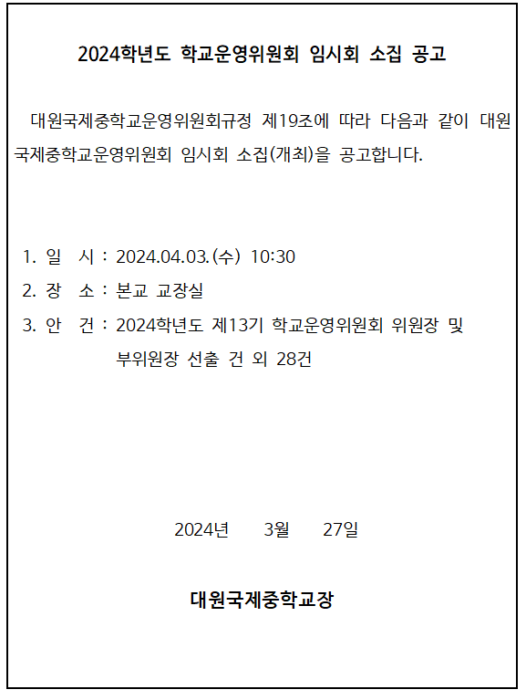 2024³â 1ȸ Çб³¿î¿µÀ§¿øÈ¸(ÀÓ½Ãȸ) °³ÃÖ °ø°í