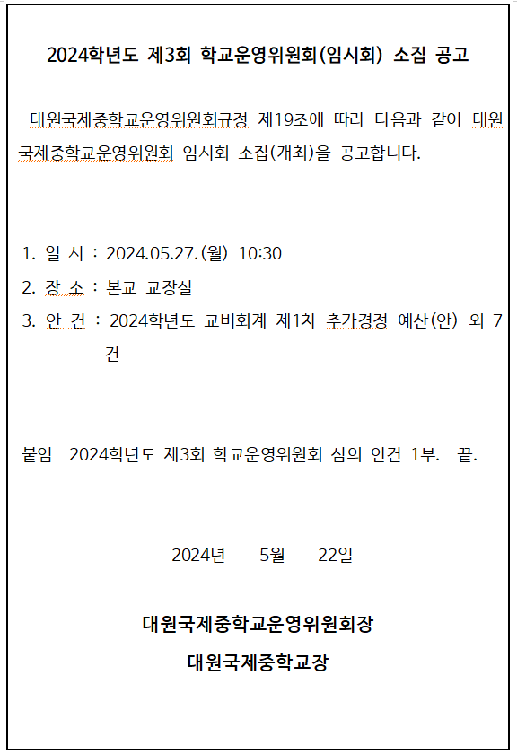 Á¦3ȸ Çб³¿î¿µÀ§¿øÈ¸ °³ÃÖ °ø°í(±ä±Þ ¾È°Ç Ãß°¡)