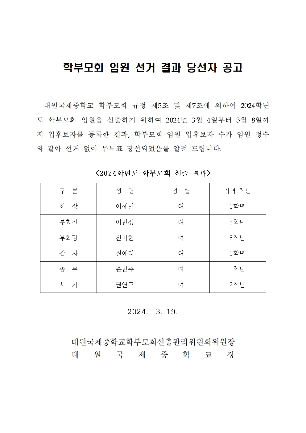 2024Çг⵵ Çкθðȸ ÀÓ¿ø ¼±Ãâ °á°ú ¾È³»