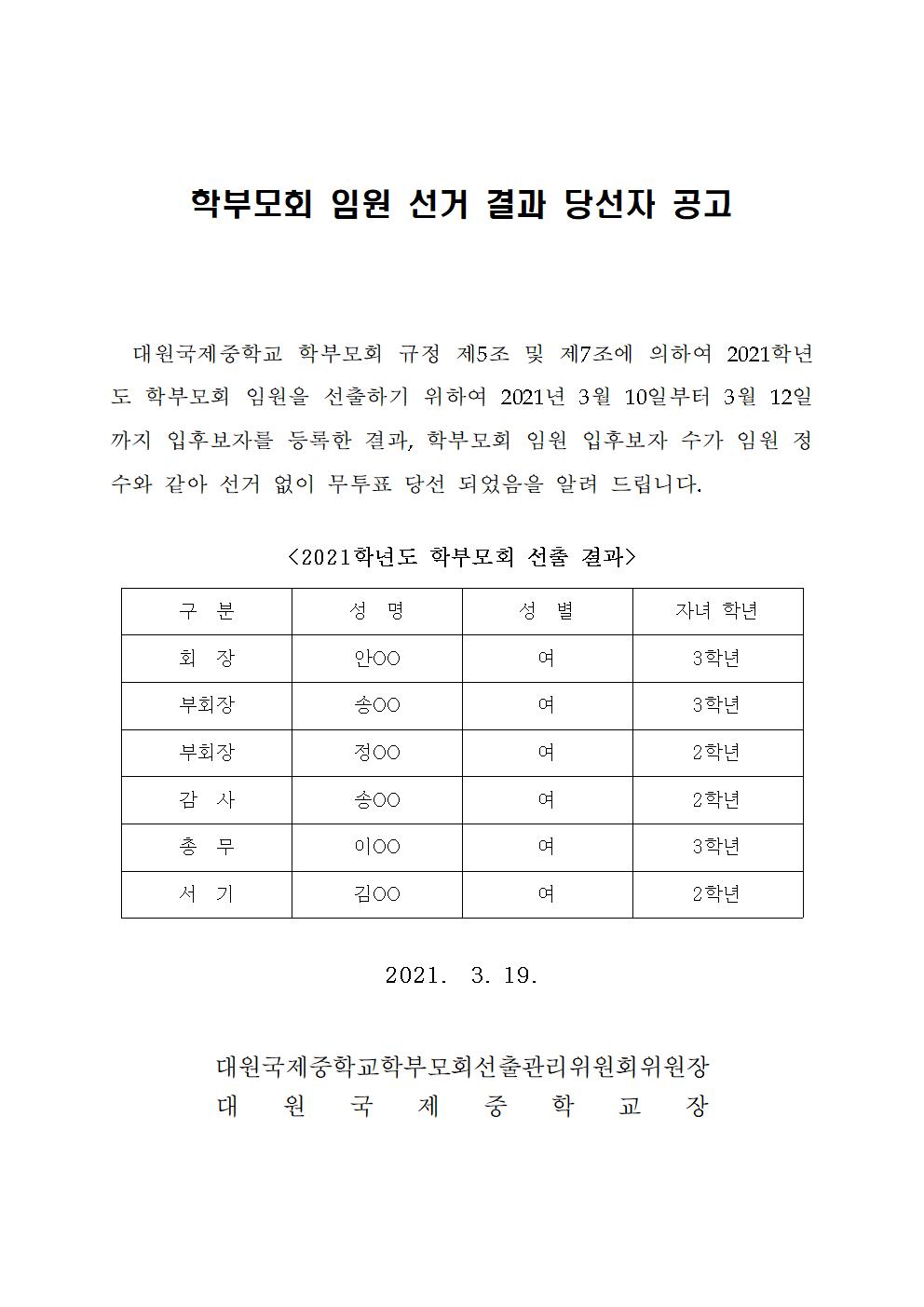 2021Çг⵵ Çкθðȸ ÀÓ¿ø ¼±Ãâ °á°ú ¾È³»