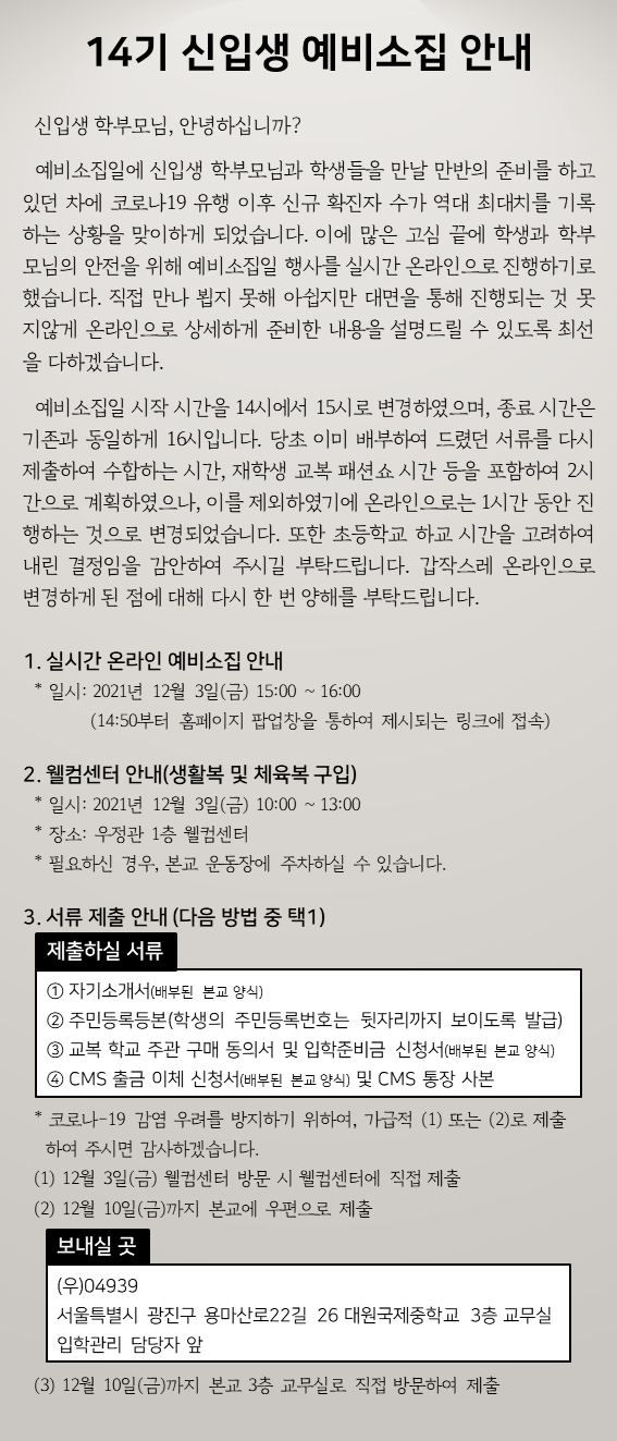 2022Çг⵵ 14±â ½ÅÀÔ»ý ¿¹ºñ¼ÒÁý ¿Â¶óÀÎ ½Ç½Ã ¾È³»