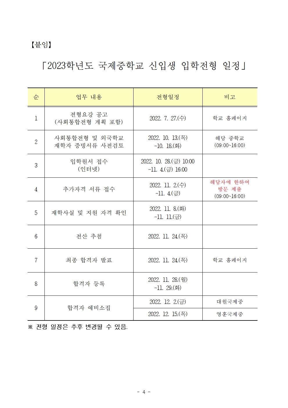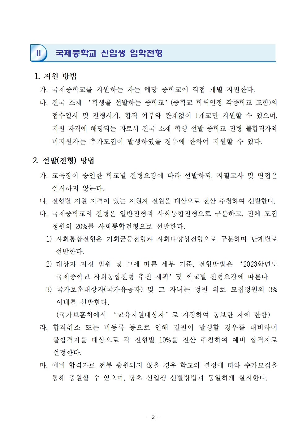2023Çг⵵ ±¹Á¦ÁßÇб³ ½ÅÀÔ»ý ÀÔÇÐÀüÇü ÀÏÁ¤ ¾È³»