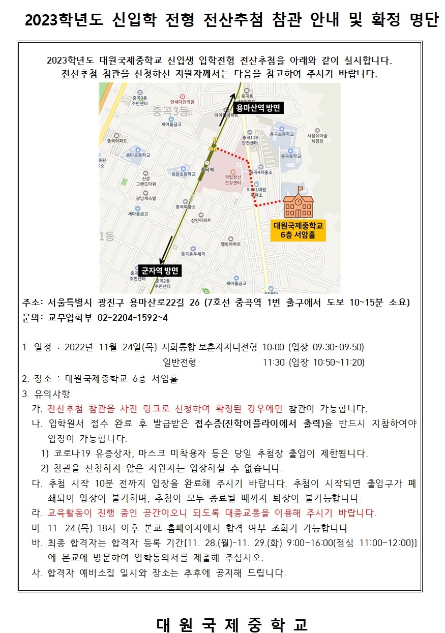 2023Çг⵵ ½ÅÀÔ»ý ÀÔÇÐÀüÇü Àü»êÃß÷ Âü°ü ¾È³» ¹× È®Á¤ ¸í´Ü °øÁö