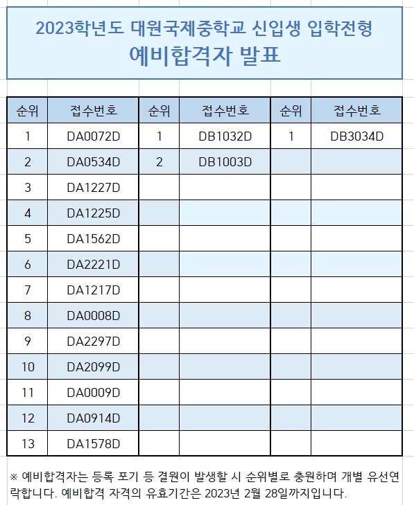 2023Çг⵵ ½ÅÀÔ»ý ÀÔÇÐÀüÇü ¿¹ºñÇÕ°ÝÀÚ ¹ßÇ¥
