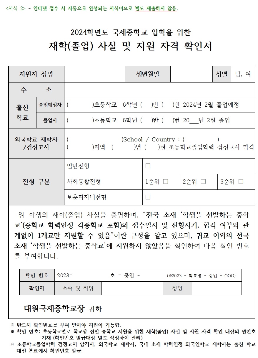 [¼­½Ä2] 2024Çг⵵ ±¹Á¦ÁßÇб³ ÀÔÇÐÀ» À§ÇÑ ÀçÇÐ(Á¹¾÷) »ç½Ç ¹× Áö¿ø ÀÚ°Ý È®Àμ­