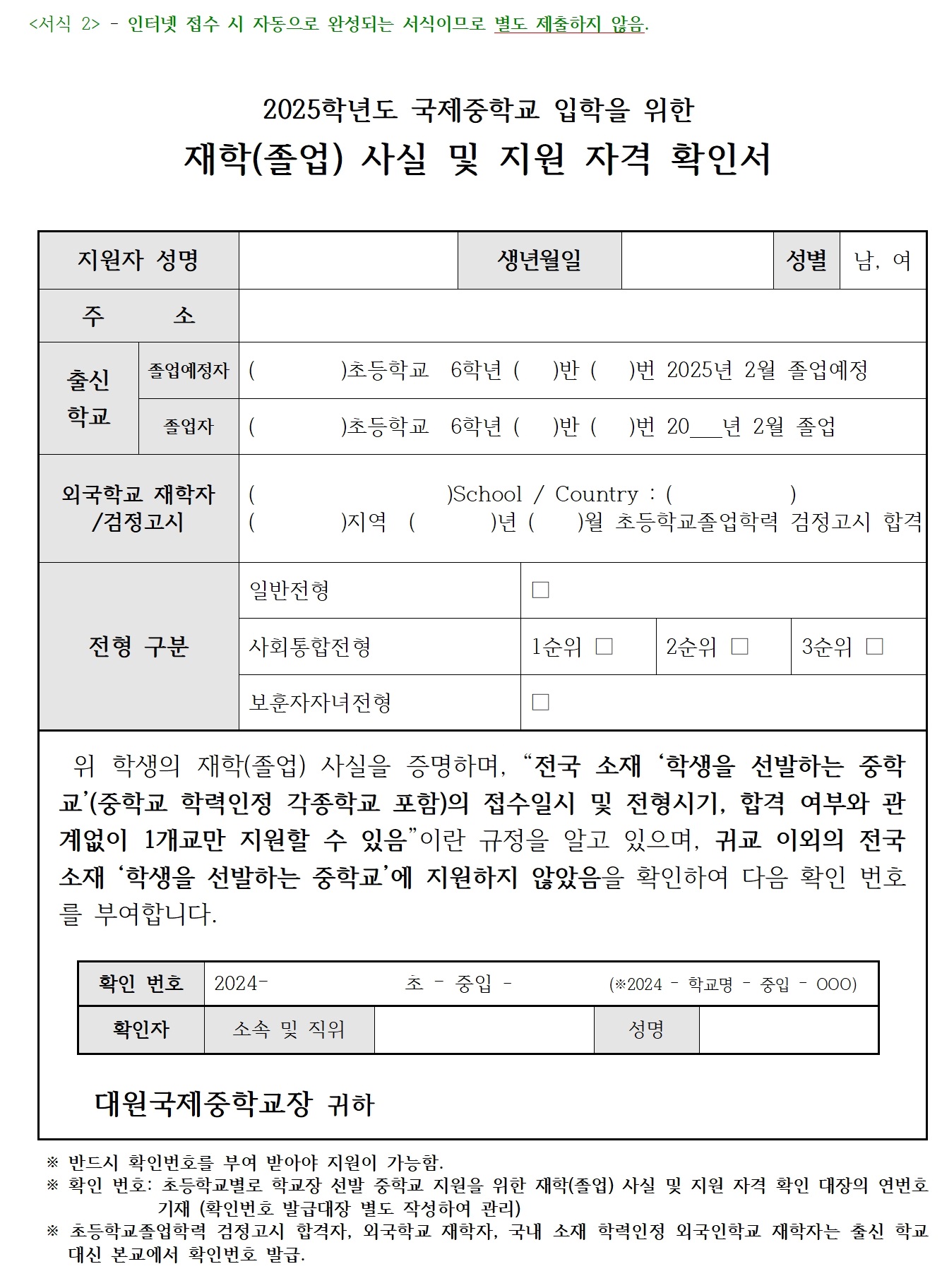 [¼­½Ä2] 2025Çг⵵ ±¹Á¦ÁßÇб³ ÀÔÇÐÀ» À§ÇÑ ÀçÇÐ(Á¹¾÷) »ç½Ç ¹× Áö¿ø ÀÚ°Ý È®Àμ­