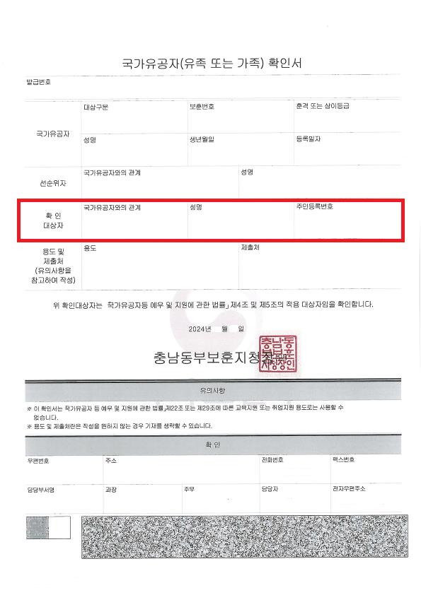 ¾Æ·¡ È®Àοø/È®Àμ¸¦ ±¹°¡º¸Èƺο¡¼ ¹ß±Þ °¡´ÉÇÑÁö¸¦ È®ÀÎÇØ¾ß ÇÔ.
