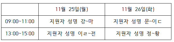 - Áö¿øÀÚ ¼º¸í “ÀÓ´ë¿ø”: 11¿ù 25ÀÏ(¿ù) 13:00~15:00