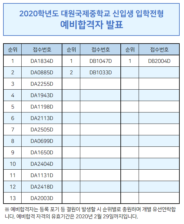 2020Çг⵵ ½ÅÀÔ»ý ÀÔÇÐÀüÇü ¿¹ºñÇÕ°ÝÀÚ ¸í´Ü