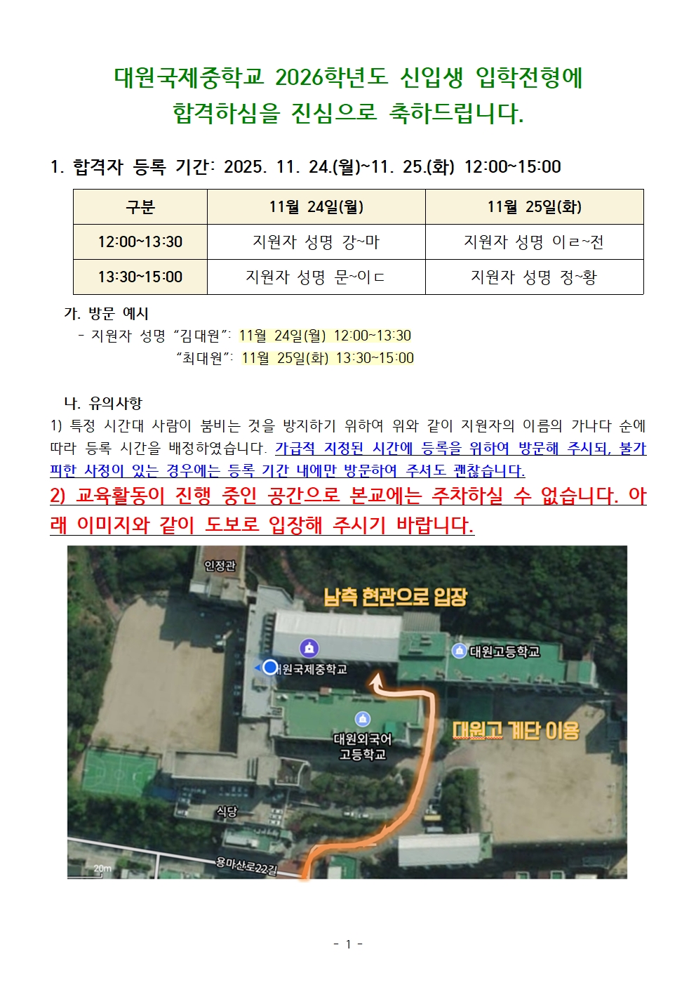 2026Çг⵵ ½ÅÀÔ»ý ÀÔÇÐÀüÇü ÇÕ°ÝÀÚ µî·Ï ¾È³»(11/24~25)