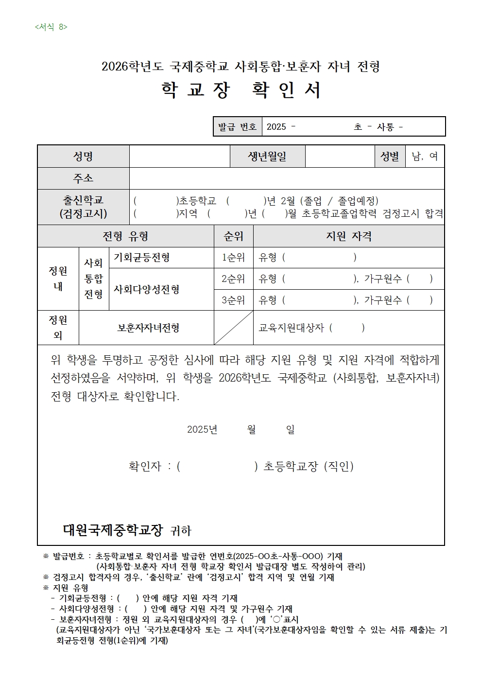 [¼½Ä 8] 2025Çг⵵ ±¹Á¦ÁßÇб³ »çȸÅëÇÕ·º¸ÈÆÀÚÀÚ³àÀüÇü Çб³Àå È®Àμ