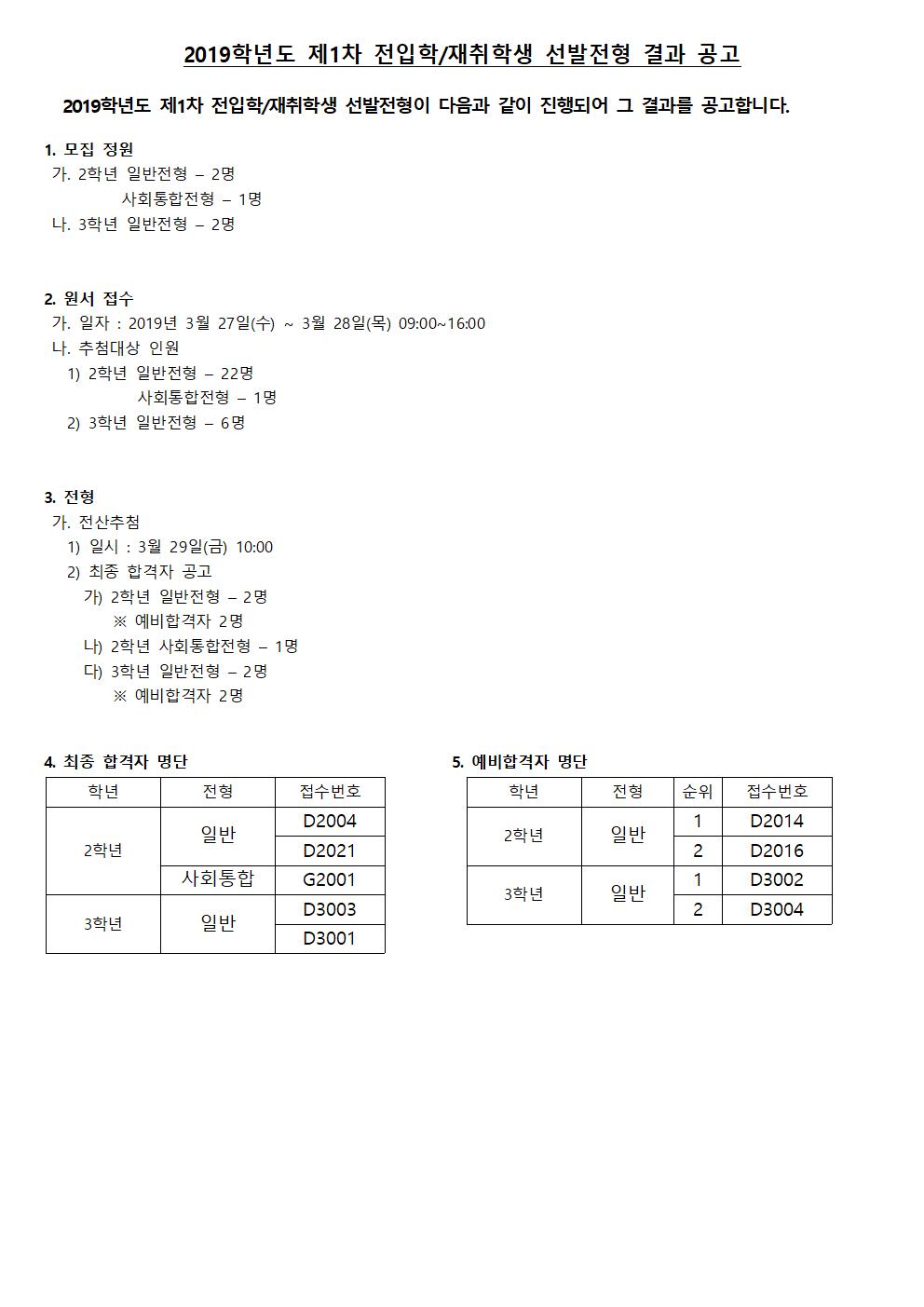 2019Çг⵵ Á¦1Â÷ ÀüÀÔÇÐ ¹× ÀçÃëÇлý ¼±¹ßÀüÇü °á°ú °ø°í