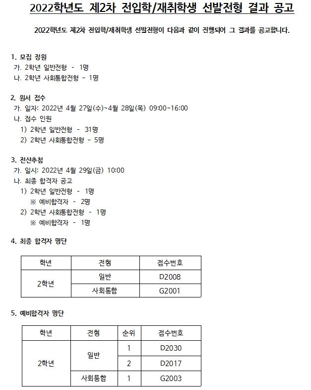 2022Çг⵵ Á¦2Â÷ ÀüÀÔÇÐ ¹× ÀçÃëÇлý ¼±¹ßÀüÇü °á°ú °ø°í