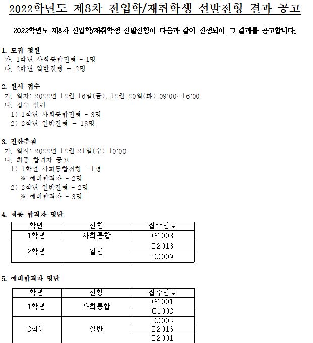 2022Çг⵵ Á¦8Â÷ ÀüÀÔÇÐ ¹× ÀçÃëÇлý ¼±¹ßÀüÇü °á°ú °ø°í
