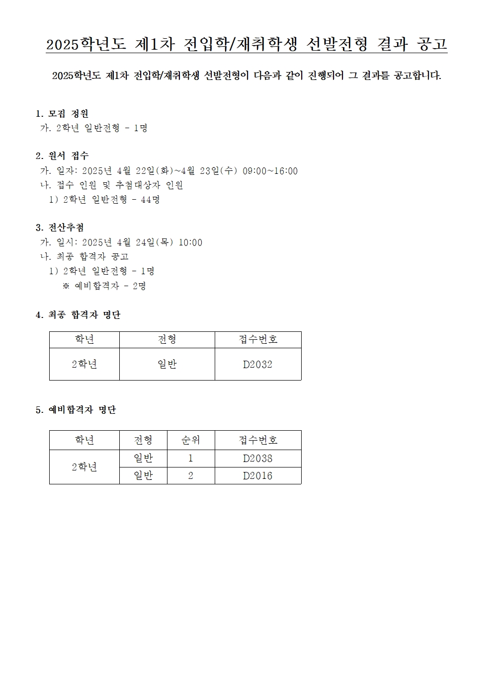 2025Çг⵵ Á¦1Â÷ ÀüÀÔÇÐ ¹× ÀçÃëÇлý °á°ú °ø°í