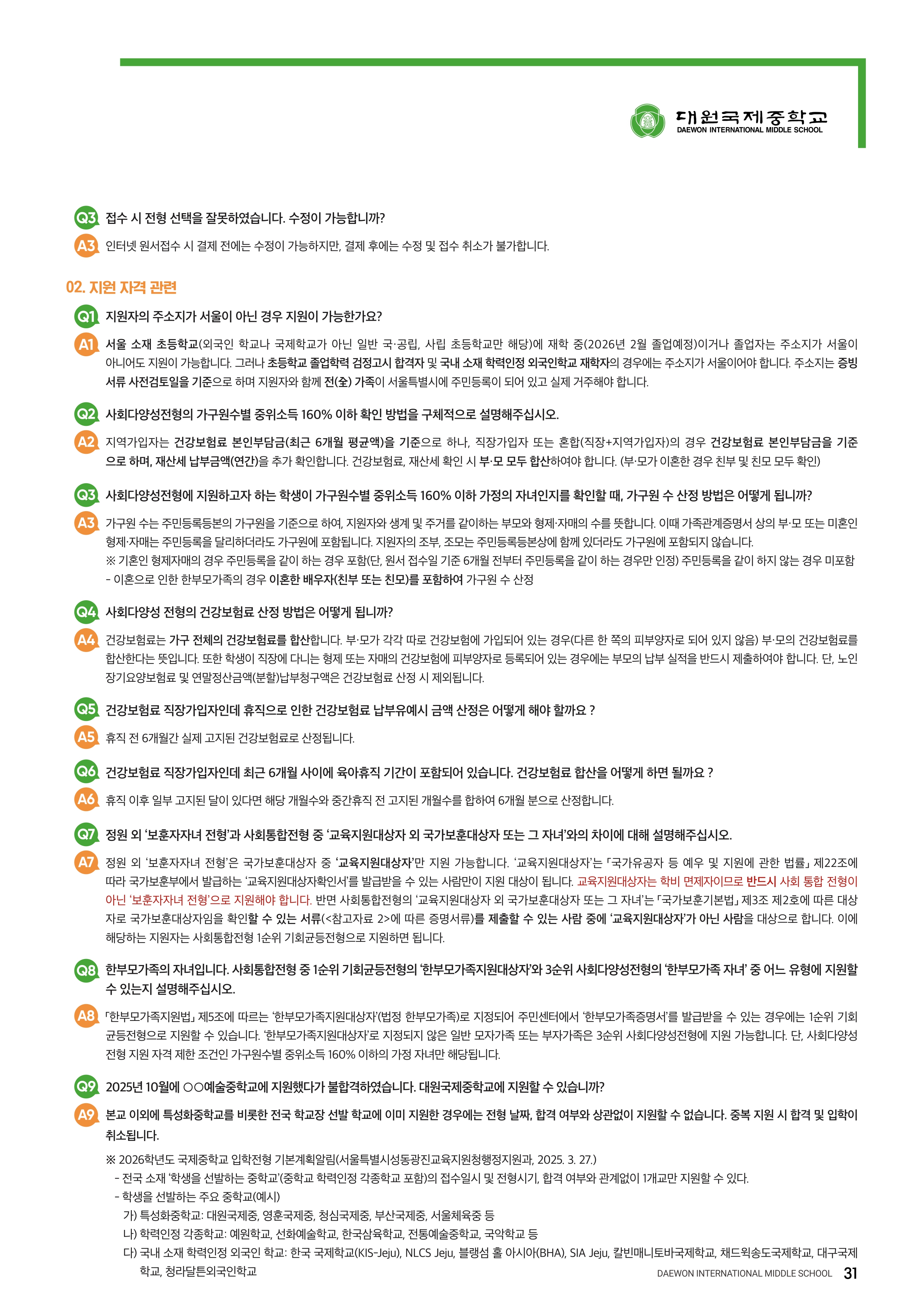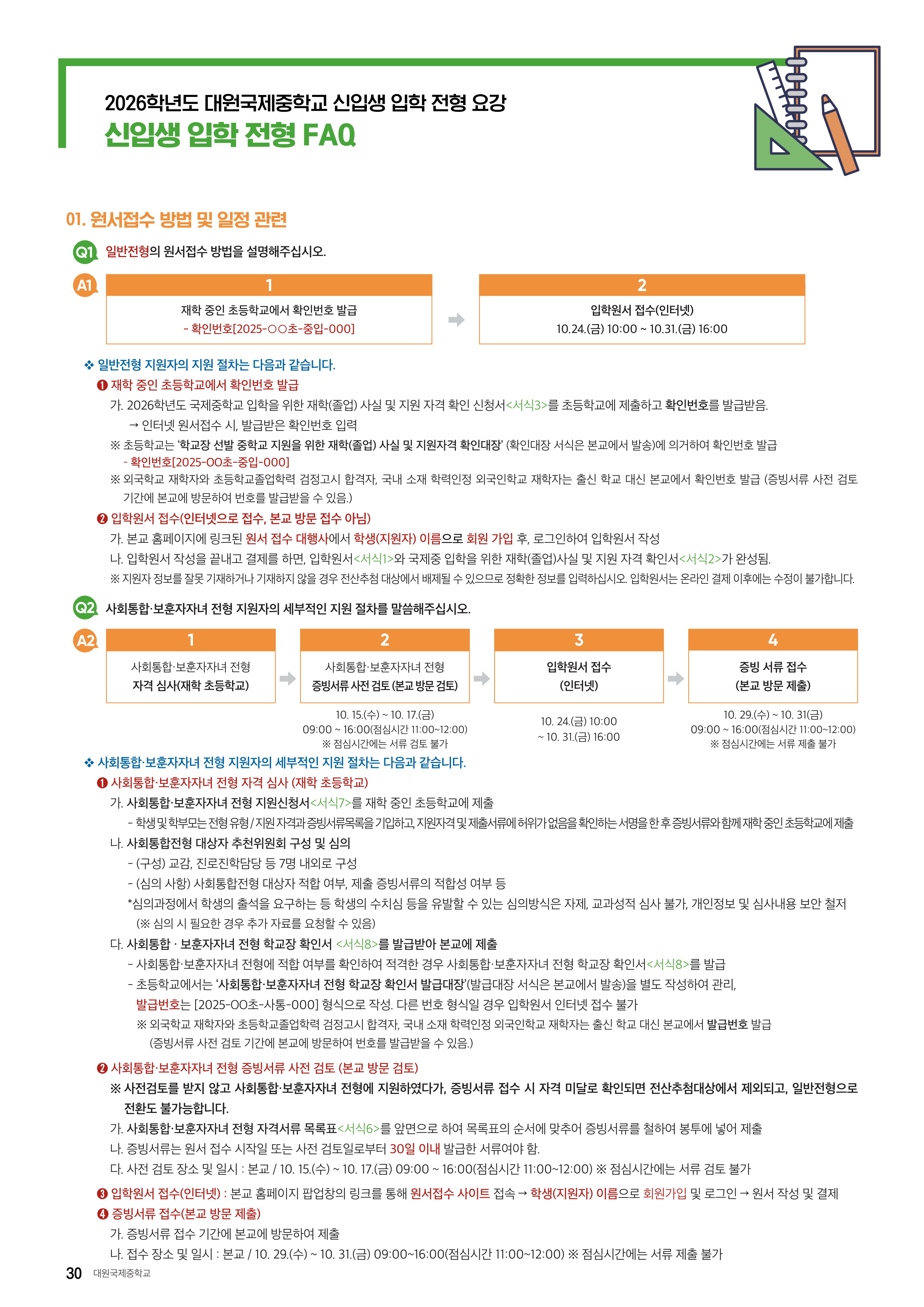 ¾Æ·¡ÀÇ ½ÅÀÔ»ý ÀÔÇÐ ÀüÇü FAQ´Â <2026Çг⵵ ´ë¿ø±¹Á¦ÁßÇб³ ½ÅÀÔ»ý ÀÔÇÐ ÀüÇü ¿ä°­>ÀÇ pg. 30 ~ 31ÀÇ ³»¿ë°ú °°Àº ³»¿ëÀÔ´Ï´Ù.