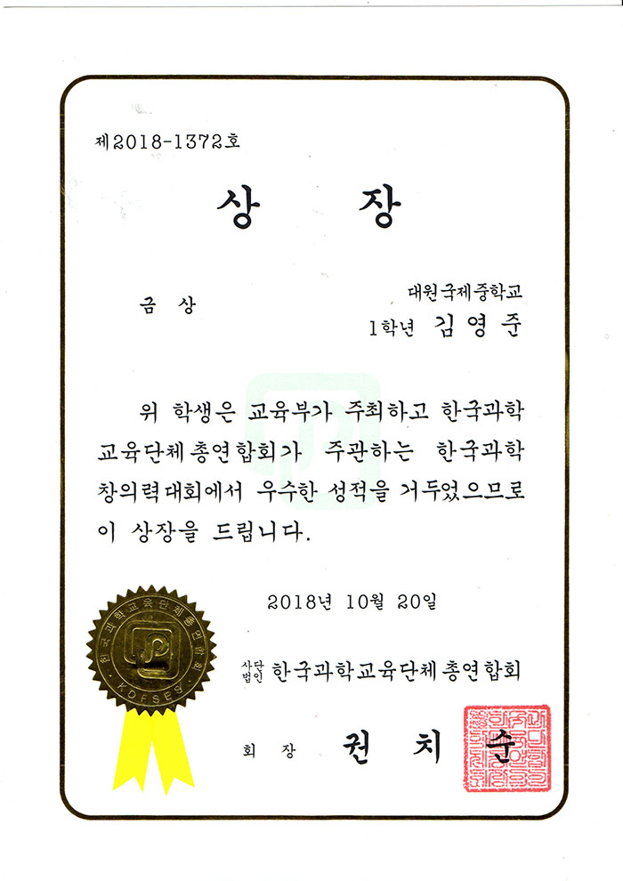 2018 Çѱ¹°úÇÐâÀǷ´ëȸ ±Ý»ó