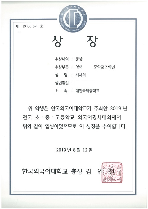 Çѱ¹¿Ü±¹¾î´ëÇб³ÁÖÃÖ 2019³â ÃÊÁß°íµîÇб³ ¿Ü±¹¾î°æ½Ã´ëȸ µ¿»ó