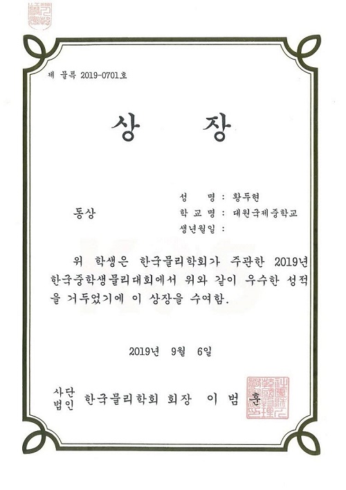 2019Çг⵵ Çѱ¹ÁßÇлý¹°¸®´ëȸ µ¿»ó (»ç´Ü¹ýÀÎ Çѱ¹¹°¸®ÇÐȸ ÁÖÃÖ)