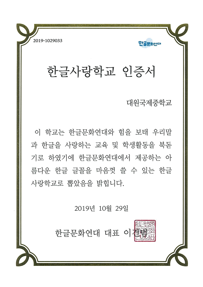 Çѱۻç¶ûÇб³ ÀÎÁõ¼­