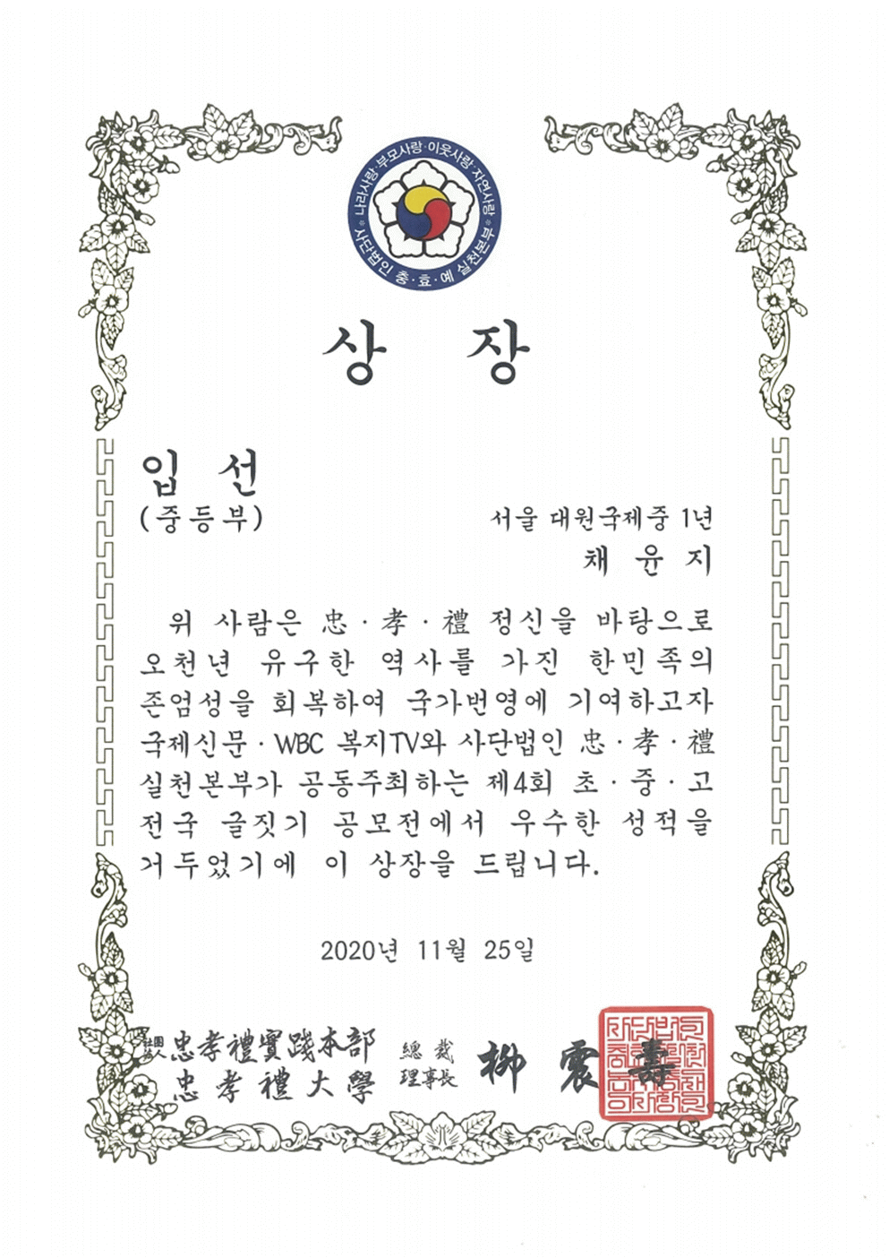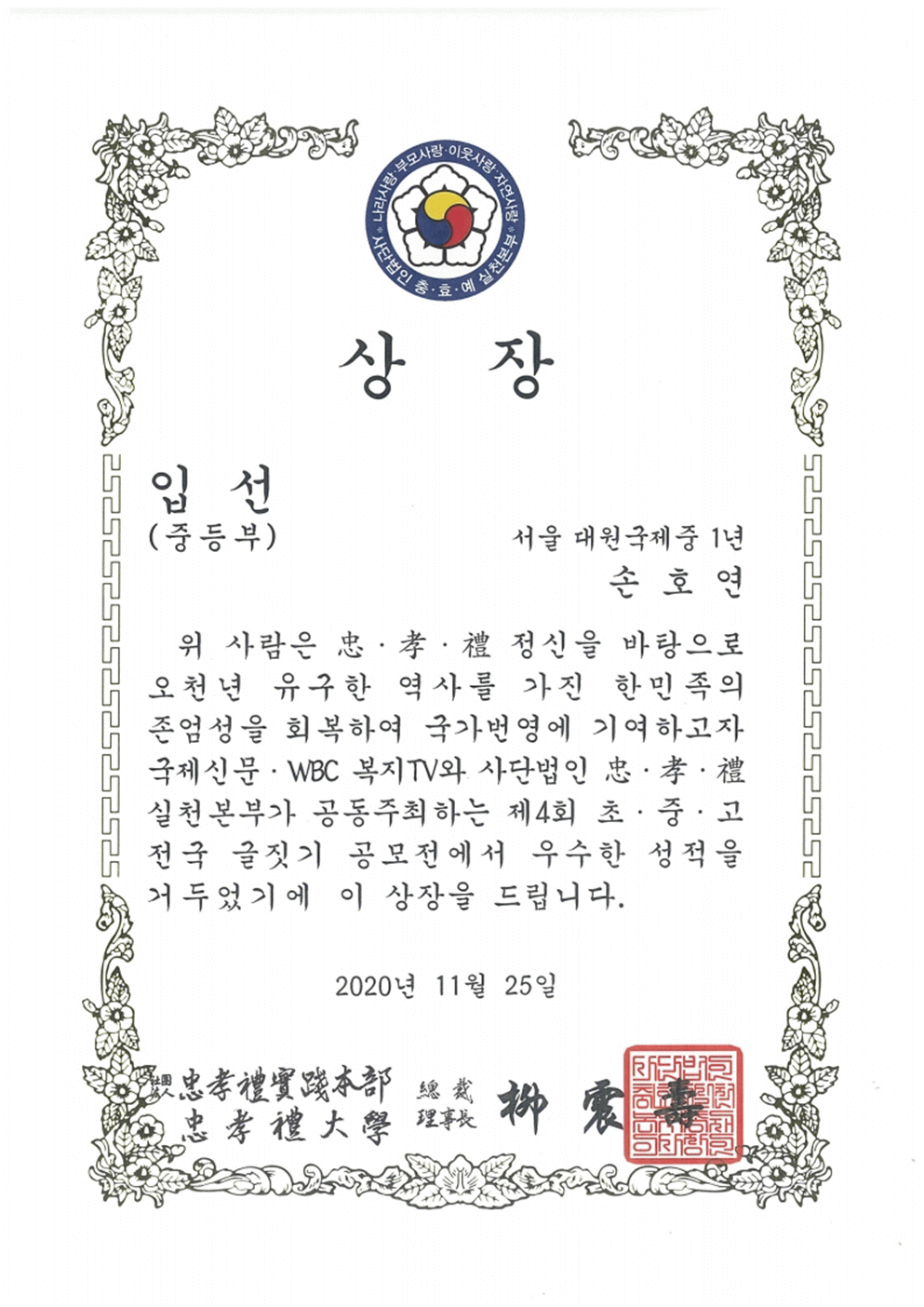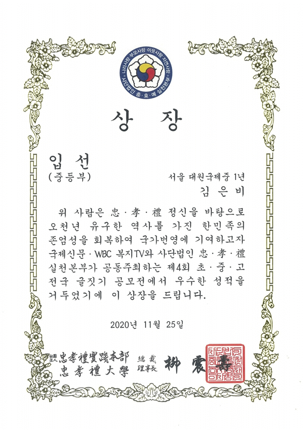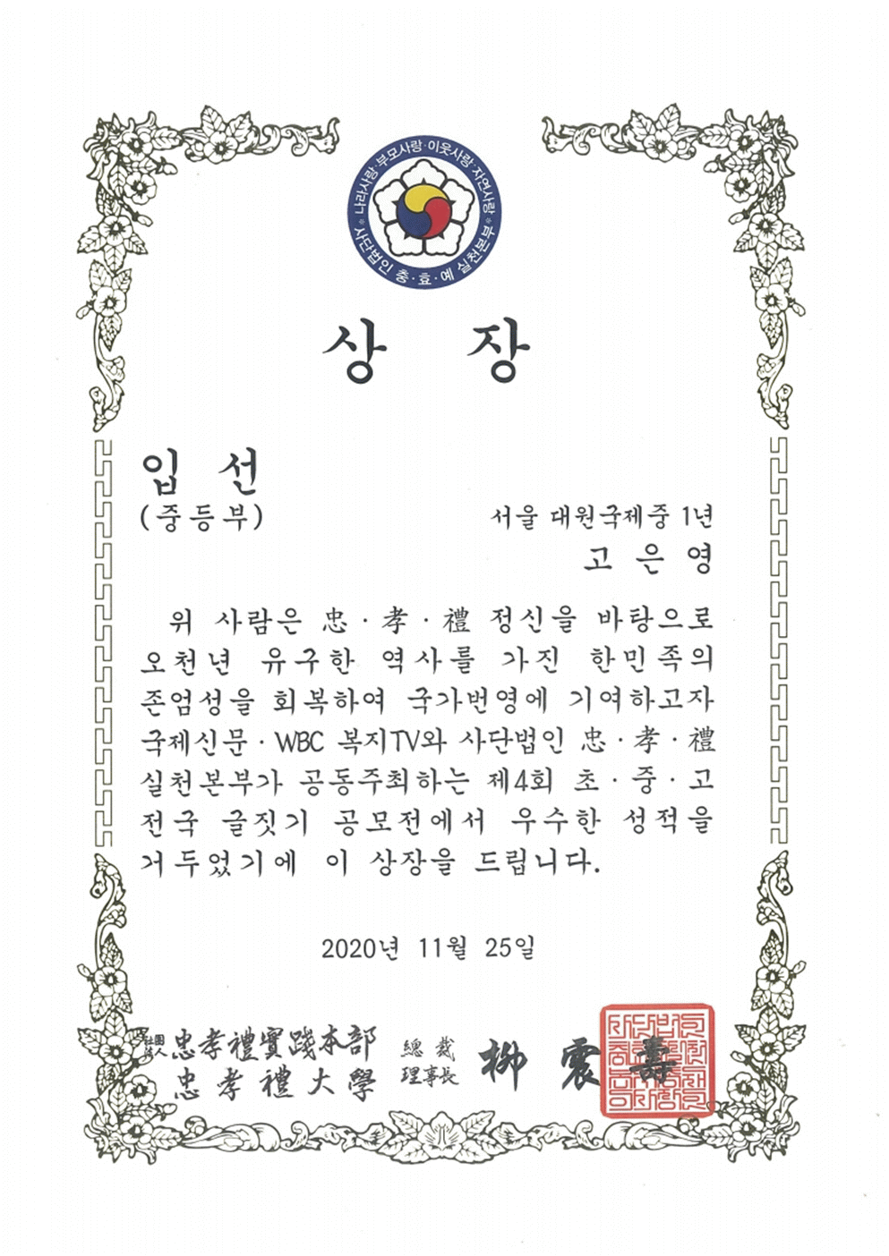 Á¦4ȸ Àü±¹ ±ÛÁþ±â °ø¸ðÀü(ÃæÈ¿¿¹ ½Çõº»ºÎ)¿¡¼­ ´ë¿ø±¹Á¦ÁßÇлýµéÀÌ
