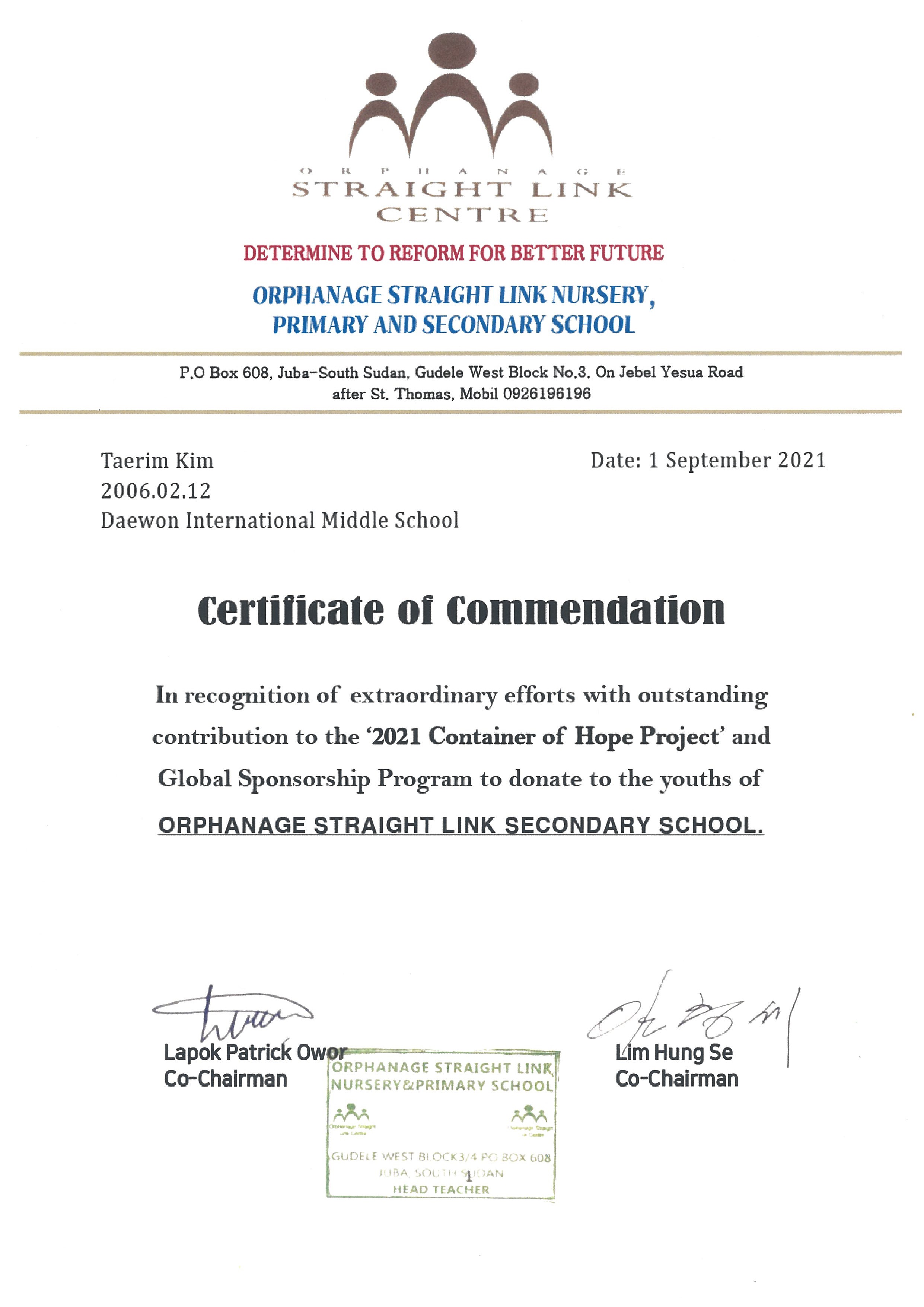 2021 Container of Hope Project °ø·Î»ó ¼ö»ó