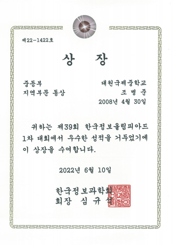 2Çгâ Africa¹Ý Á¶º´ÁØ ÇлýÀÌ Á¦39ȸ Çѱ¹Á¤º¸¿Ã¸²ÇǾƵå 1Â÷´ëȸ Àü±¹ºÎ¹® Àº»ó, Áö¿ªºÎ¹® µ¿»óÀ» ¼ö»óÇß½À´Ï´Ù.