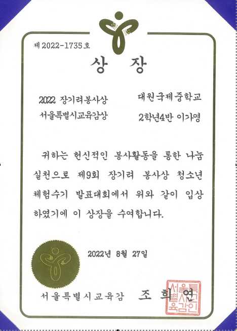 2022 Àå±â·ÁºÀ»ç»ó ¼­¿ïƯº°½Ã±³À°°¨»ó