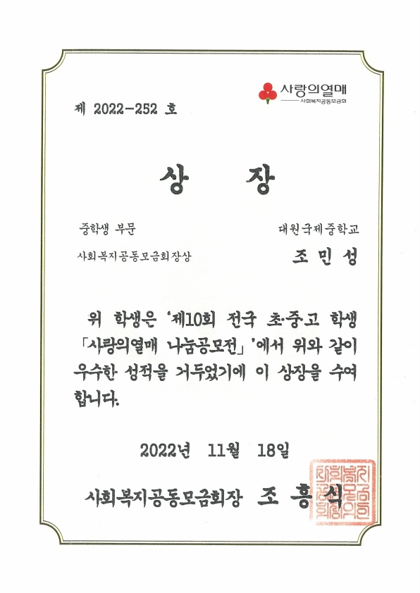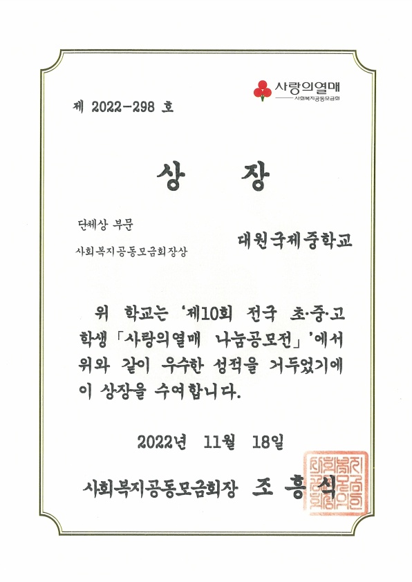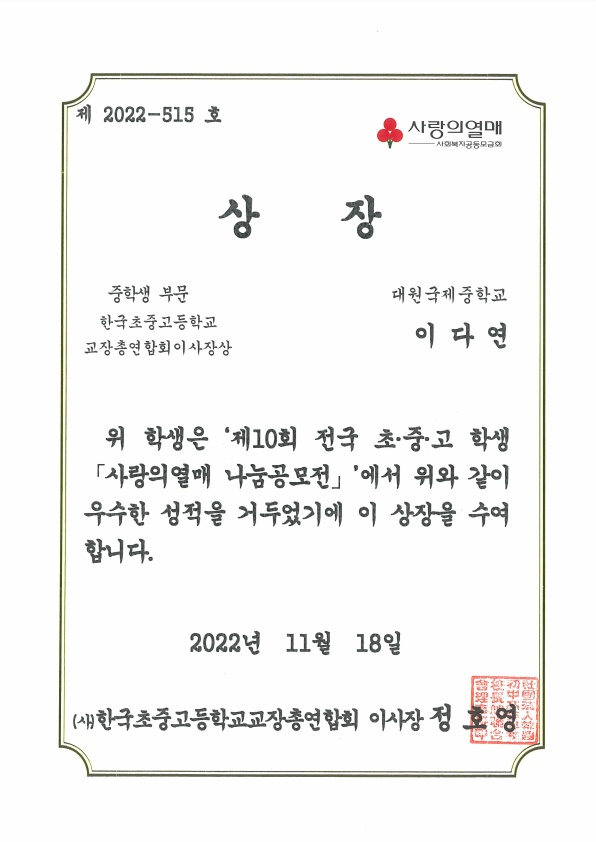 Á¦10ȸ Àü±¹ ÃÊ¡¤Áß¡¤°í Çлý ¡¸»ç¶ûÀÇ¿­¸Å ³ª´®°ø¸ðÀü¡¹ ¼ö»ó