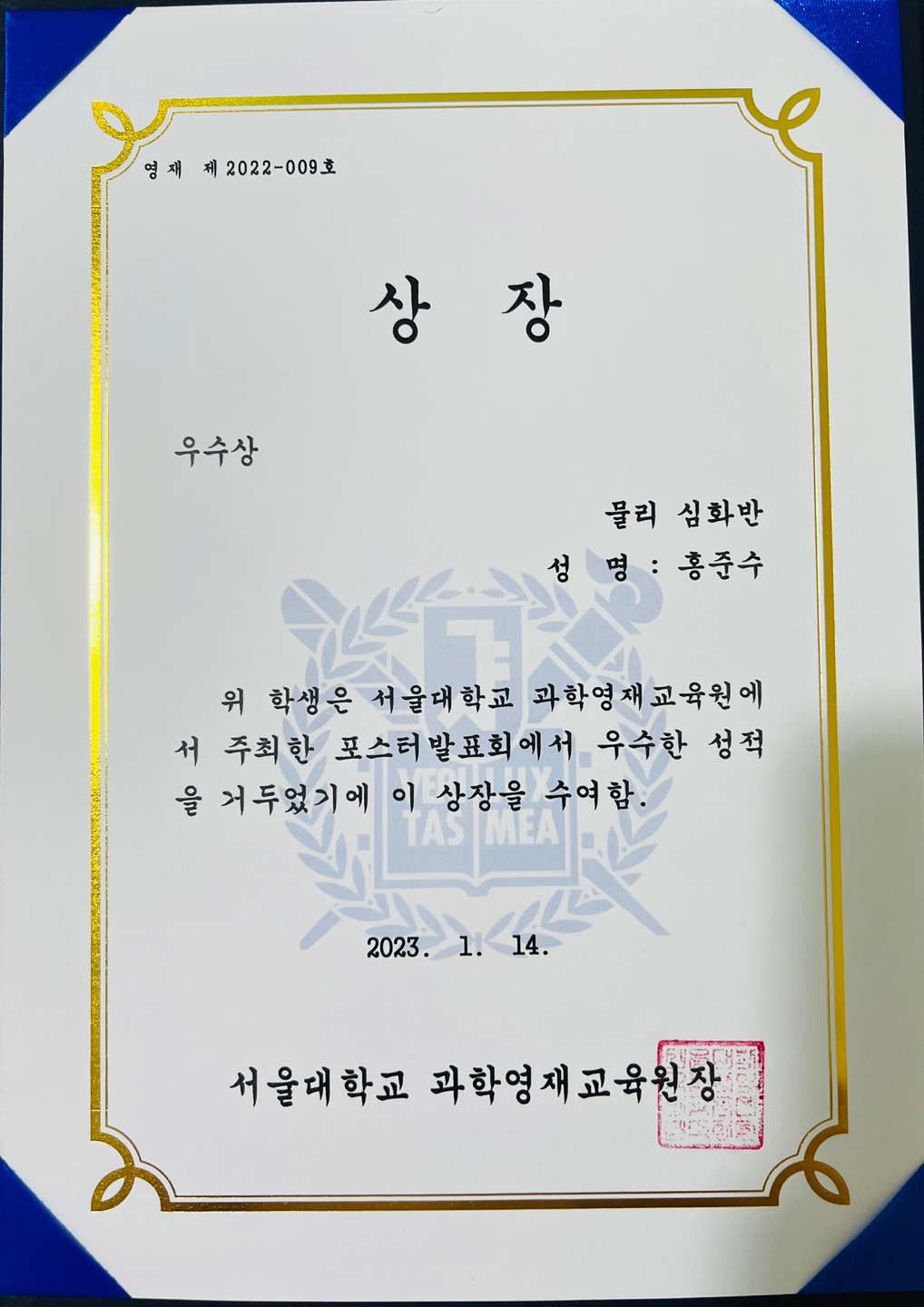 ¼­¿ï´ëÇб³ °úÇпµÀç±³À°¿ø Æ÷½ºÅ͹ßǥȸ ¿ì¼ö»ó