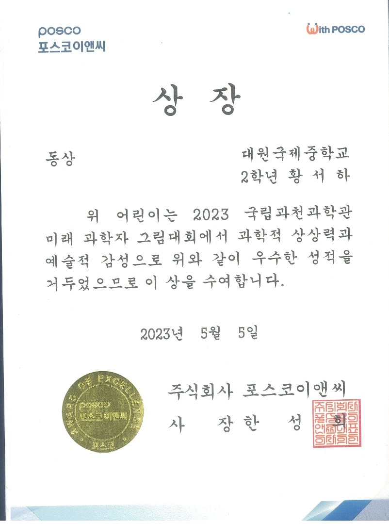 2Çгâ Ȳ¼­ÇÏ 2023 ±¹¸³°úõ°úÇаü ¹Ì·¡ °úÇÐÀÚ ±×¸²´ëȸ µ¿»óÀ» ¼ö»óÇÏ¿´½À´Ï´Ù