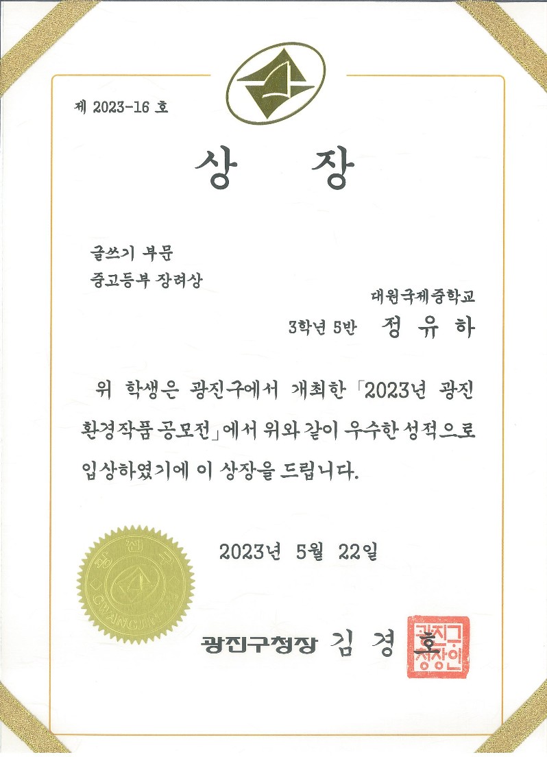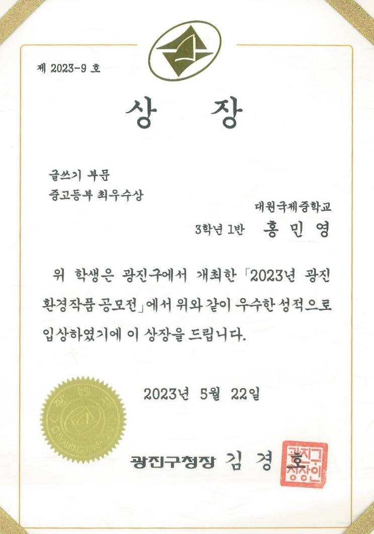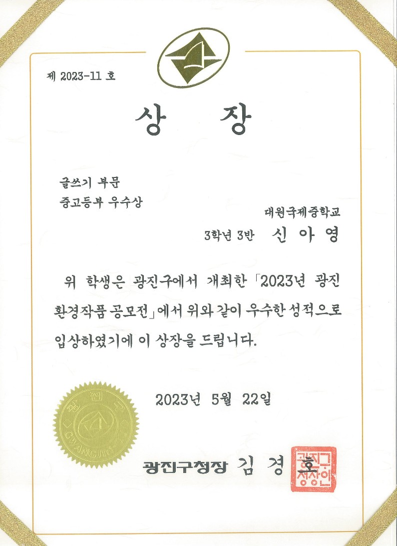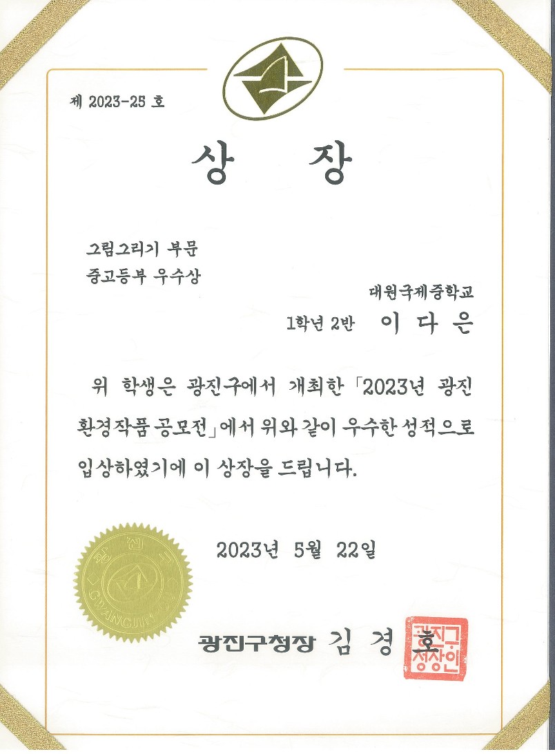 ±¤Áø±¸¿¡¼­ °³ÃÖÇÑ ¡¸2023³â ±¤Áø ȯ°æÀÛǰ °ø¸ðÀü¡¹¿¡¼­ ±è¿ë¿õ¼±»ý´Ô²²¼­ ÁöµµÇØÁֽŠ