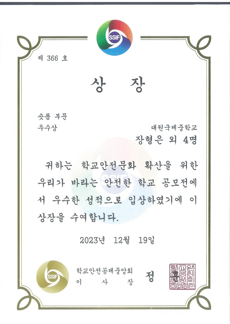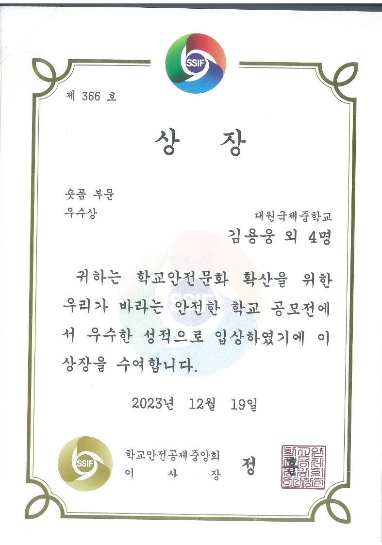 ¿ì¸®°¡ ¹Ù¶ó´Â ¾ÈÀüÇÑ Çб³ °ø¸ðÀü ¼±»ý´Ô ¼ö»ó