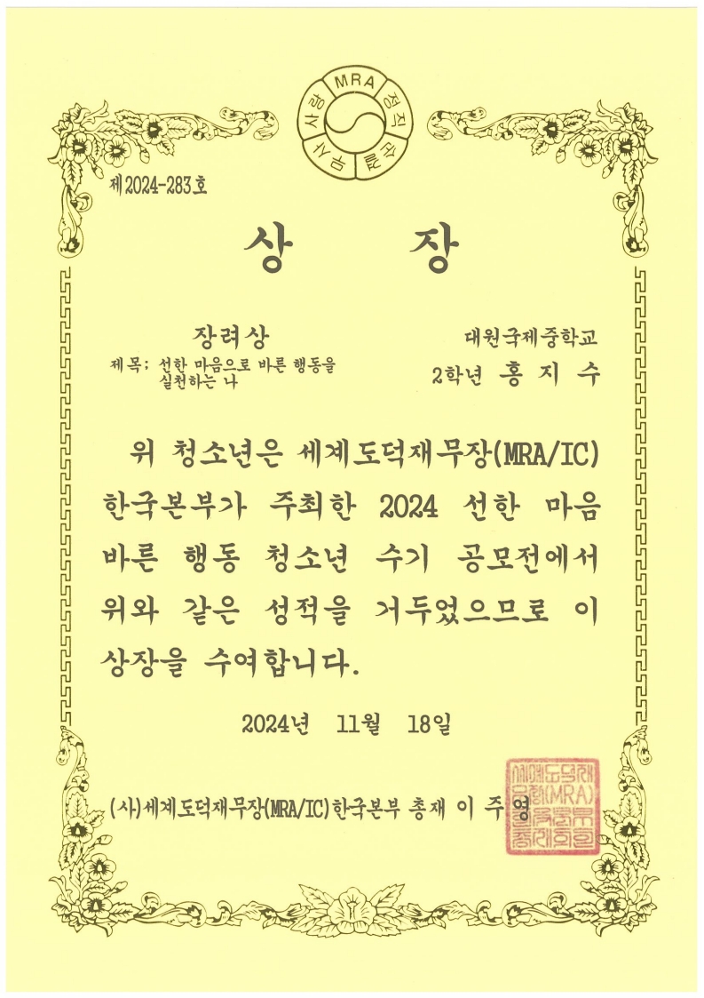 2024 ¼±ÇÑ ¸¶À½ ¹Ù¸¥ Çൿ û¼Ò³â ¼ö±â °ø¸ðÀü