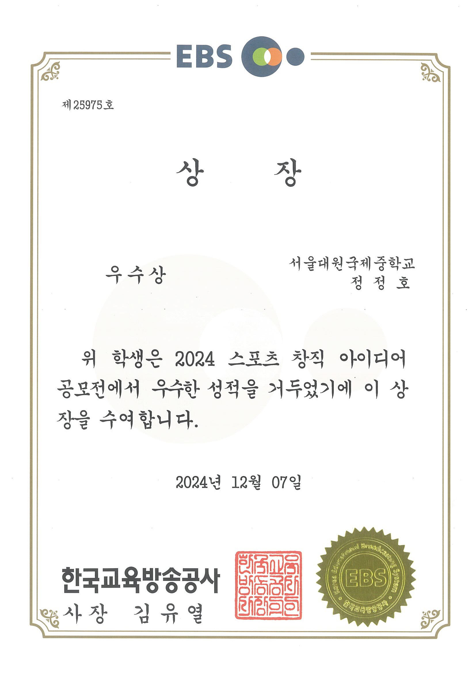2024 ½ºÆ÷Ã÷ âÁ÷ ¾ÆÀ̵ð¾î °ø¸ðÀü¿¡¼­ ¿ì¼ö»ó ¼ö»ó