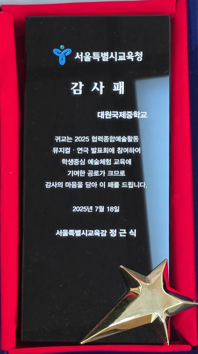 ´ë¿ø±¹Á¦ÁßÇб³ 1Çгâ 4¹Ý ÇлýµéÀÌ ¼­¿ïƯº°½Ã±³À°Ã»¿¡¼­ °³ÃÖÇÑ 2025 Çù·ÂÁ¾ÇÕ¿¹¼úȰµ¿ ¹ÂÁöÄ÷¿¬±Ø ¹ßǥȸ¿¡ Âü¿©Çß½À´Ï´Ù.