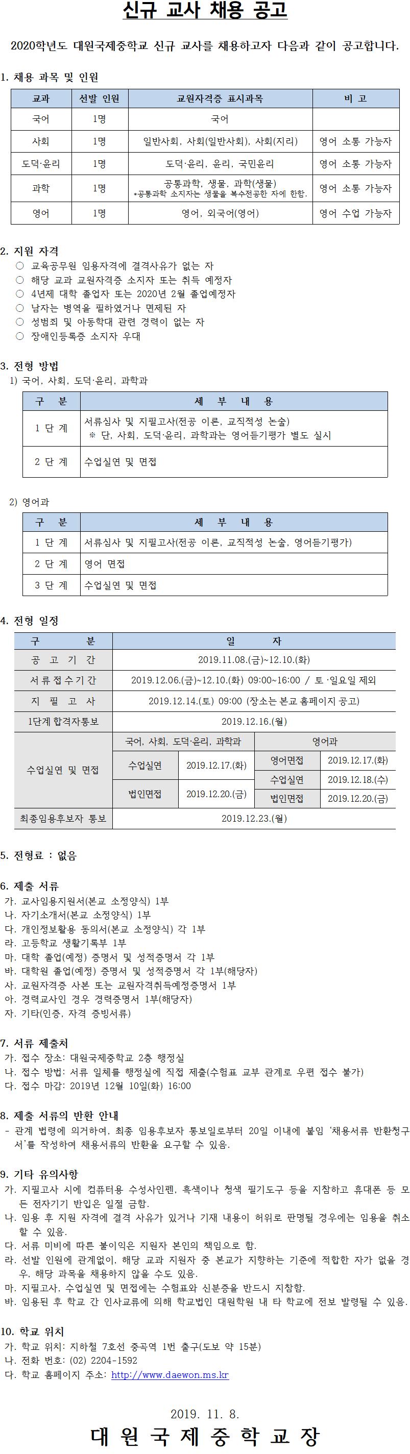 2020Çг⵵_´ë¿ø±¹Á¦ÁßÇб³_½Å±Ô±³»ç_ä¿ë_°ø°í¹®.hwp 2020Çг⵵_´ë¿ø±¹Á¦ÁßÇб³_½Å±Ô±³»ç_ä¿ë_°ø°í¹®.hwp   ´Ù¿î·Îµå ¼ö : [ 277 ]