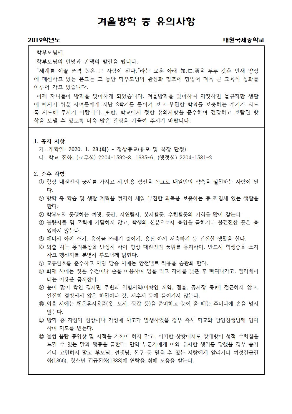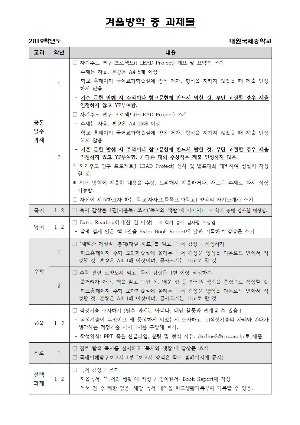 2019Çг⵵ °Ü¿ï¹æÇÐ Áß °úÁ¦¹° ¾È³»