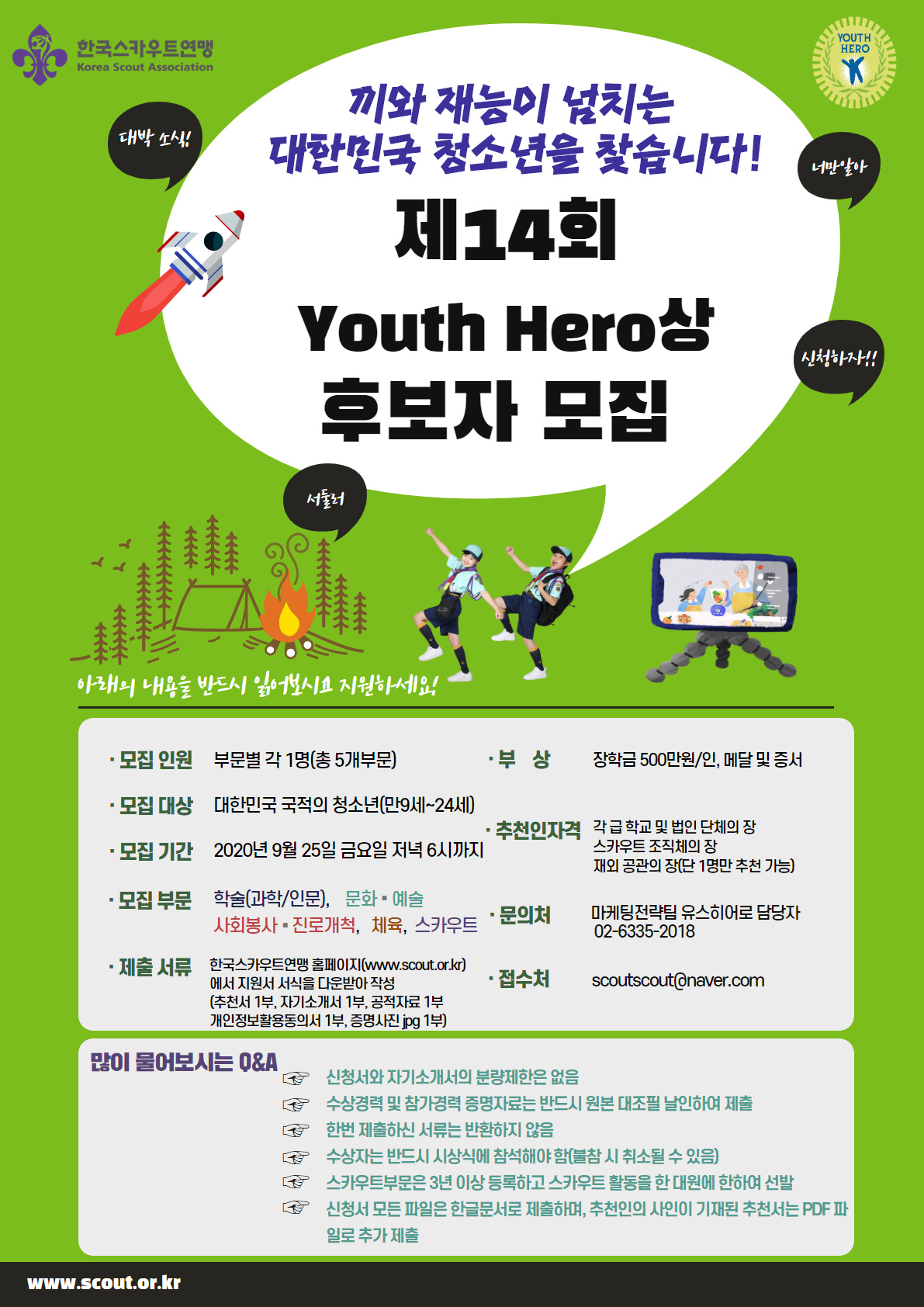 <2020³âµµ Á¦14ȸ Youth Hero»ó(ÀÚ¶û½º·¯¿î û¼Ò³â´ë»ó) Èĺ¸ÀÚ ¸ðÁý ¾È³»>