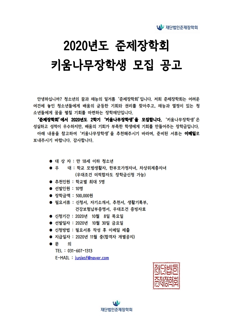 <2020³âµµ ÁØÁ¦ÀåÇÐȸ Ű¿ò³ª¹«ÀåÇлý ¸ðÁý °ø°í>