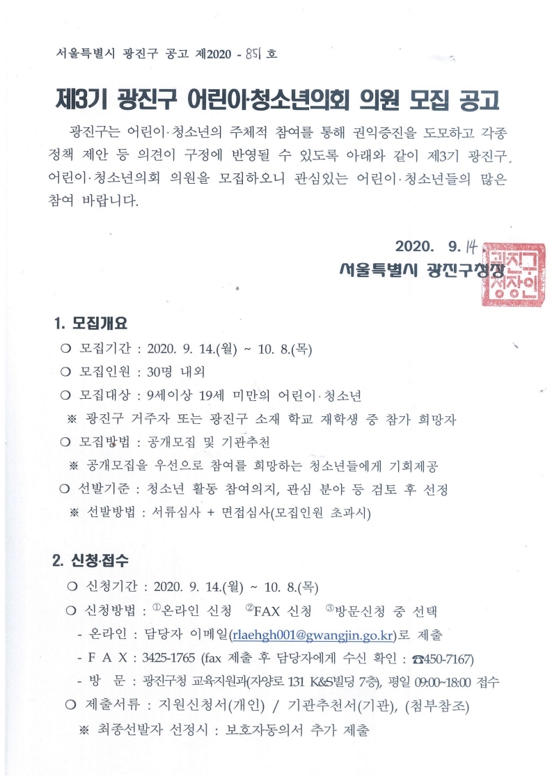 1. ¸ðÁý±â°£ : 2020. 9. 25.(±Ý)±îÁö