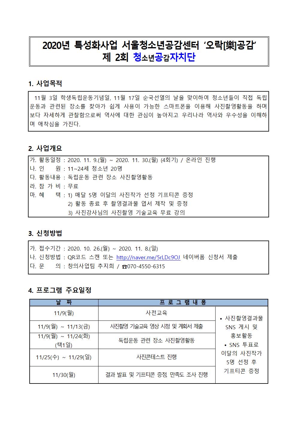2020³â Ư¼ºÈ­»ç¾÷ ¼­¿ïû¼Ò³â°ø°¨¼¾ÅÍ '¿À¶ô[Õ¥]°ø°¨' Á¦2ȸ û°øÀÚÄ¡´Ü ¾È³»