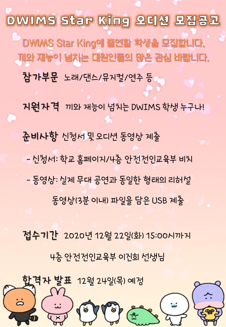 2020 DWIMS Star King ¿Àµð¼Ç ¸ðÁý °ø°í