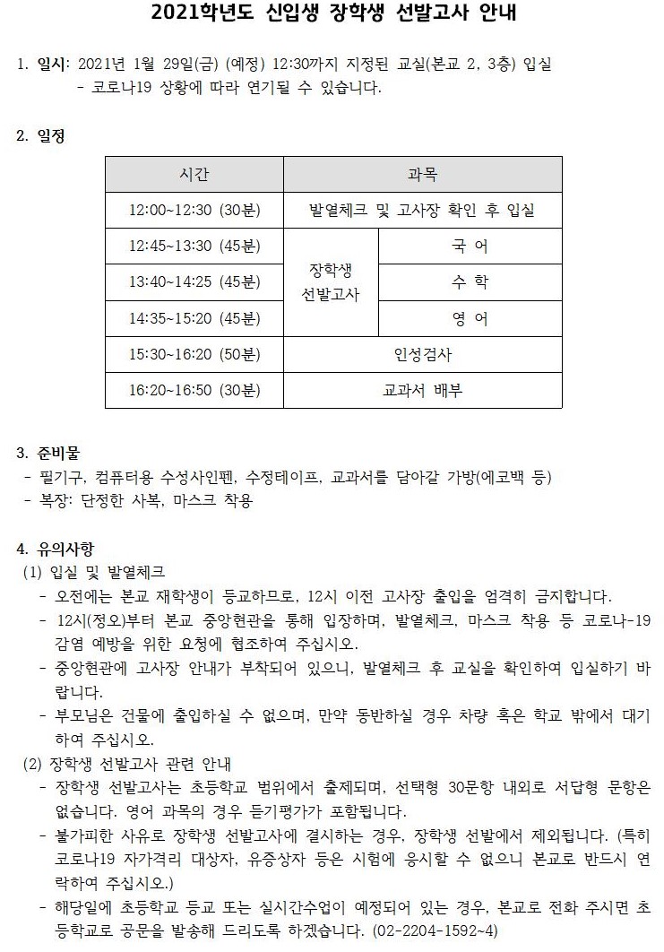 2021Çг⵵ ½ÅÀÔ»ý ÀåÇлý ¼±¹ß°í»ç ¾È³»